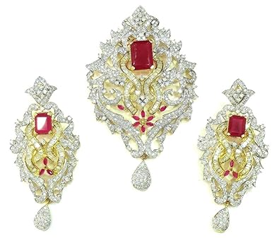 Shingar Jewellery Ksvk Jewels American Diamonds Onyx A.d. Ruby Pendent set For Women (4752-psad-4499-a-1)